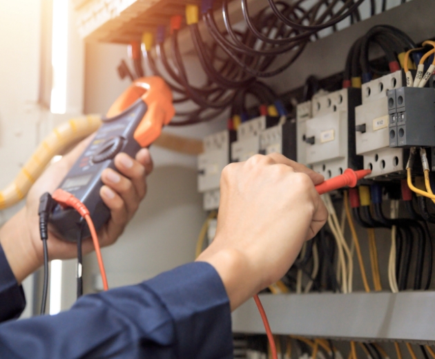 電気設備⼯事を幅広く⼿掛けており、商業施設、⼯場、ビル、住宅など、あらゆる施設における電気設備の設計、施⼯、保守を⾏っています。