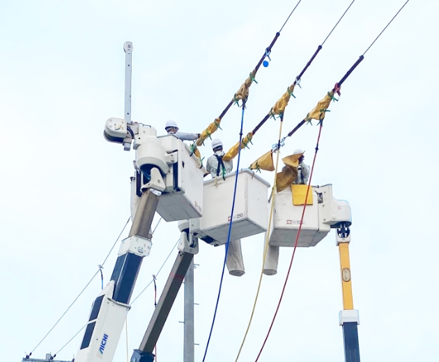 安全管理を徹底し、迅速かつ確実な施⼯を提供することで、地域社会の電⼒網の安定性を確保します。